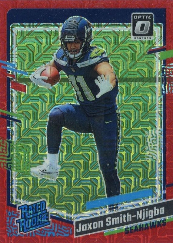 The Jaxon Smith-Njigba 2023 Optic #293 Red Mojo Rookie card in Raw condition has moved down -$4.00 (-12.5%) in the last 30 days and was last sold for $28.00 .
