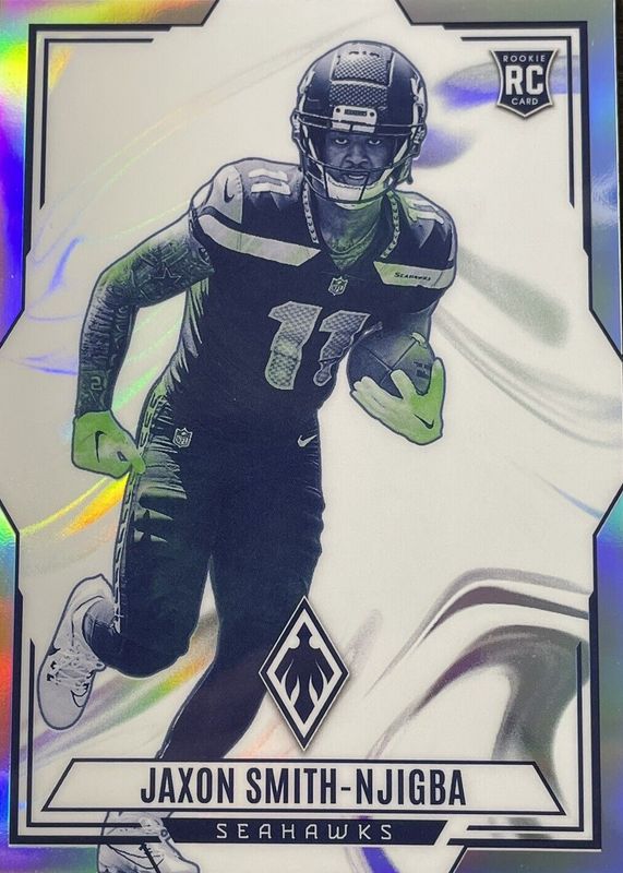 The Jaxon Smith-Njigba 2023 Phoenix #CON-4 Contours Rookie card in Raw condition has moved up $5.75 (+135%) in the last 30 days and was last sold for $10.00 .