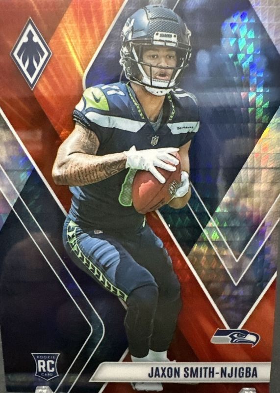 The Jaxon Smith-Njigba 2023 Phoenix #106 Fire Burst /340 Rookie card in Raw condition has moved down -$3.75 (-27.3%) in the last 30 days and was last sold for $10.00 .
