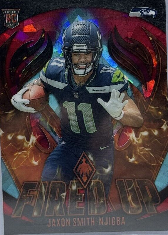 The Jaxon Smith-Njigba 2023 Phoenix #FU-12 Fired Up - Fire & Ice /35 Rookie card in Raw condition has not changed in price in the last 30 days and was last sold for $25.75 .