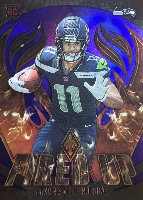 The Jaxon Smith-Njigba 2023 Phoenix #FU-12 Fired Up - Purple /99 Rookie card in Raw condition has not changed in price in the last 30 days and was last sold for $11.00 .