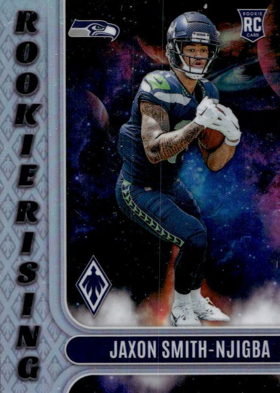 The Jaxon Smith-Njigba 2023 Phoenix #RIS-9 Rookie Rising card in Raw condition has moved up $2.25 (+113%) in the last 30 days and was last sold for $4.25 .