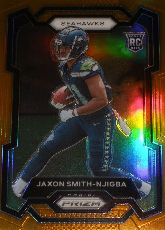 The Jaxon Smith-Njigba 2023 Prizm #390 Orange /249 Rookie card in Raw condition has moved up $92.50 (+206%) in the last 30 days and was last sold for $137.50 .