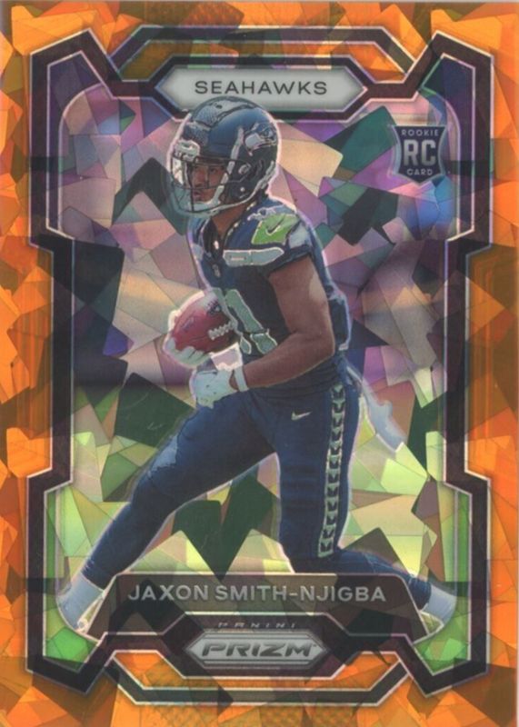 The Jaxon Smith-Njigba 2023 Prizm #390 Orange Ice Rookie card in Raw condition has moved up $7.01 (+54.0%) in the last 30 days and was last sold for $20.00 .