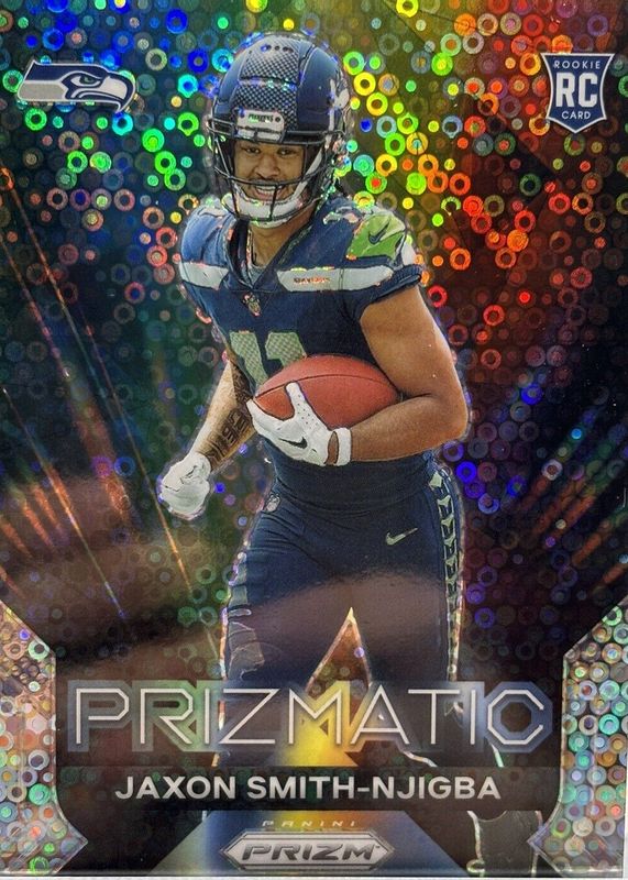 The Jaxon Smith-Njigba 2023 Prizm #1 Prizmatic - No Huddle Rookie card in Raw condition has not changed in price in the last 30 days and was last sold for $15.00 .