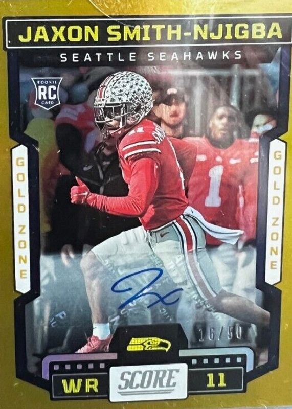 2023 Score - Rookies Jaxon Smith-Njigba #348 Gold Zone Signatures /50 (AU, RC)