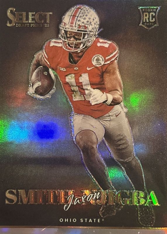 This card is 1 of 58 Jaxon Smith-Njigba's card variations in the 2023 Select Draft Picks set being tracked by Sports Card Investor, including Concourse, Field Level, Concourse Blue, Concourse Gold Lazer, and Concourse Green Lazer.