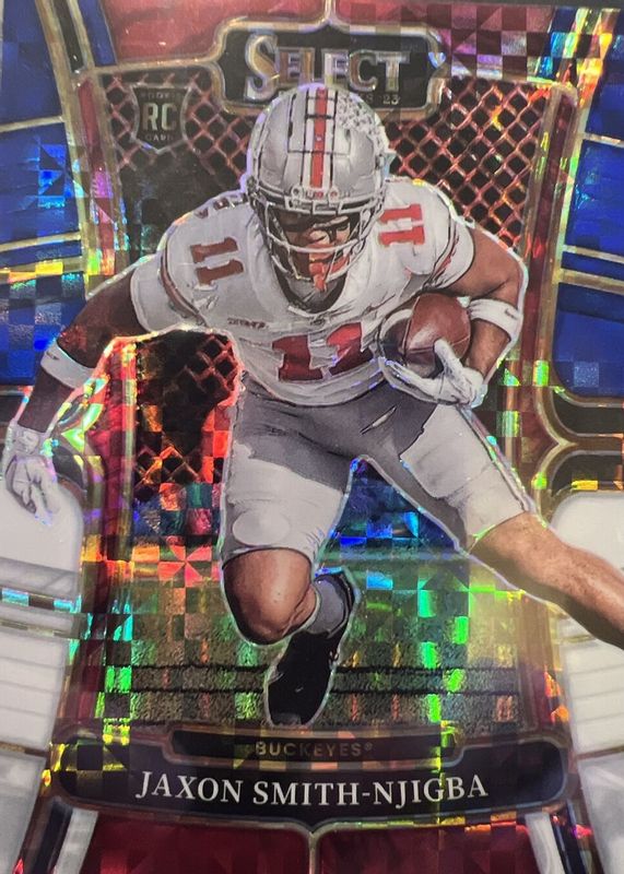 This card is 1 of 58 Jaxon Smith-Njigba's card variations in the 2023 Select Draft Picks set being tracked by Sports Card Investor, including Concourse, Field Level, Concourse Blue, Concourse Gold Lazer, and Concourse Green Lazer.
