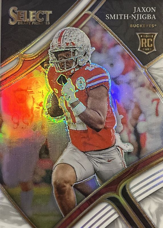 This card is 1 of 58 Jaxon Smith-Njigba's card variations in the 2023 Select Draft Picks set being tracked by Sports Card Investor, including Concourse, Field Level, Concourse Blue, Concourse Gold Lazer, and Concourse Green Lazer.