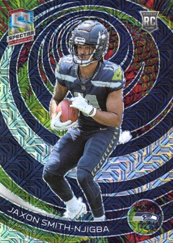The Jaxon Smith-Njigba 2023 Spectra #126 Meta /25 Rookie card in Raw condition has not changed in price in the last 30 days and was last sold for $45.00 .