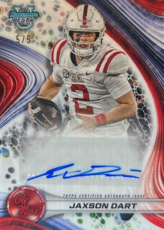 Jaxson Dart 2024 Bowman Best University #BOA-JD Best of 2024 Autographs - White Geometric Refractor /5 RAW Price Guide