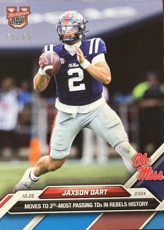 2024 Topps Bowman U Now 32 Jaxson Dart Ole Miss Rebels TDs Record Blue 26/49