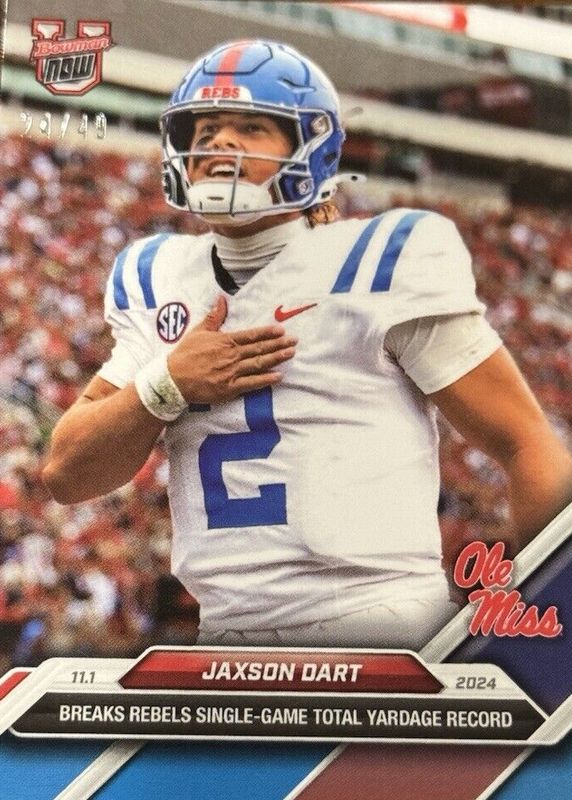 2024 BOWMAN U NOW FOOTBALL 37 JAXSON DART MISS BREAKS YARDAGE RECORD BLUE 03/49