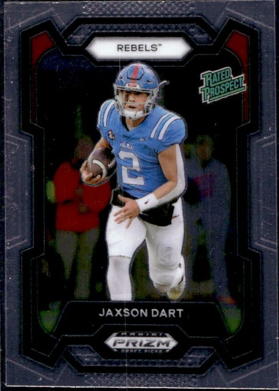 The Jaxson Dart 2024 Prizm Draft Picks #147 Base card is 1 of 83 Jaxson Dart's card variations in the 2024 Prizm Draft Picks set being tracked by Sports Card Investor, including Green, Purple Wave, Red Ice, Ruby Wave, and Silver.