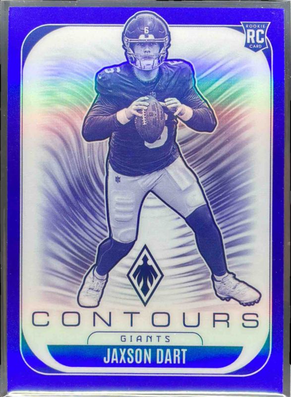 The Jaxson Dart 2025 Phoenix #24 Contours - Blue /199 Rookie card is 1 of 183 Jaxson Dart's card variations in the 2025 Phoenix set being tracked by Sports Card Investor, including Base, Silver, Silver Hyper, Silver Lava, and Silver Lazer.