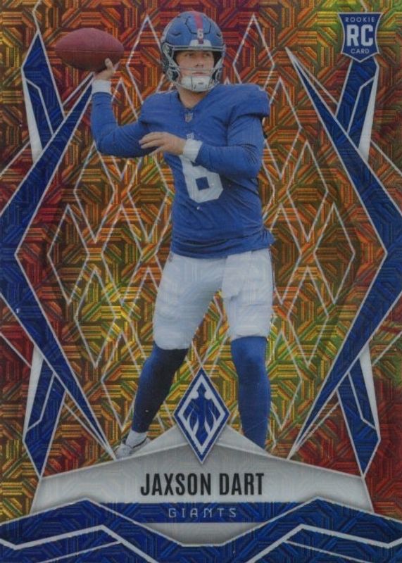 The Jaxson Dart 2025 Phoenix #200 FireBurst /350 Rookie card in Raw condition has moved up $5.49 (+13.9%) in the last 30 days and was last sold for $44.99 .
