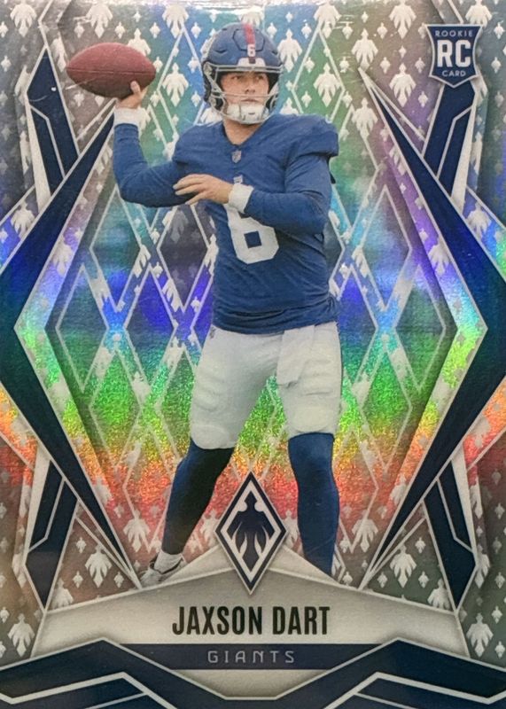 The Jaxson Dart 2025 Phoenix #200 Phoenix /149 Rookie card in Raw condition has moved up $2.99 (+8.1%) in the last 30 days and was last sold for $39.99 .