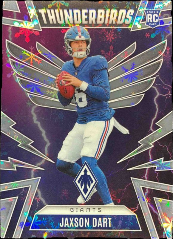 The Jaxson Dart 2025 Phoenix #38 Thunderbirds - Silver Winter /199 Rookie card is 1 of 183 Jaxson Dart's card variations in the 2025 Phoenix set being tracked by Sports Card Investor, including Base, Silver, Silver Hyper, Silver Lava, and Silver Lazer.