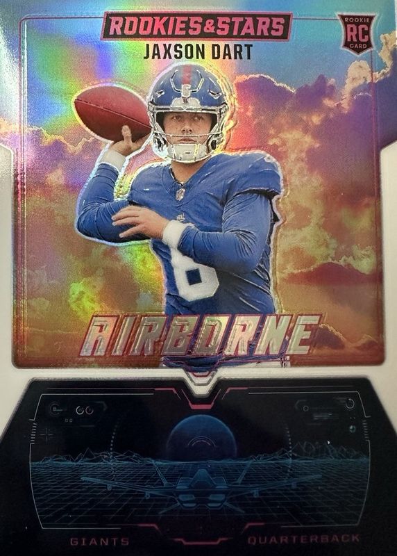 This card is 1 of 117 Jaxson Dart's card variations in the 2025 Rookies & Stars set being tracked by Sports Card Investor, including Airborne - Blue Plaid, Airborne - Lazer, Airborne - Red Plaid, Airborne - Silver, and Artistry in Motion.