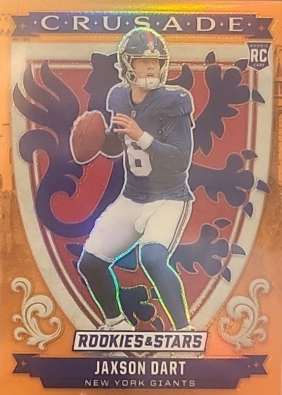 The Jaxson Dart 2025 Rookies & Stars #11 Crusade - Orange /25 card in Raw condition has not changed in price in the last 30 days and was last sold for $75.00 .