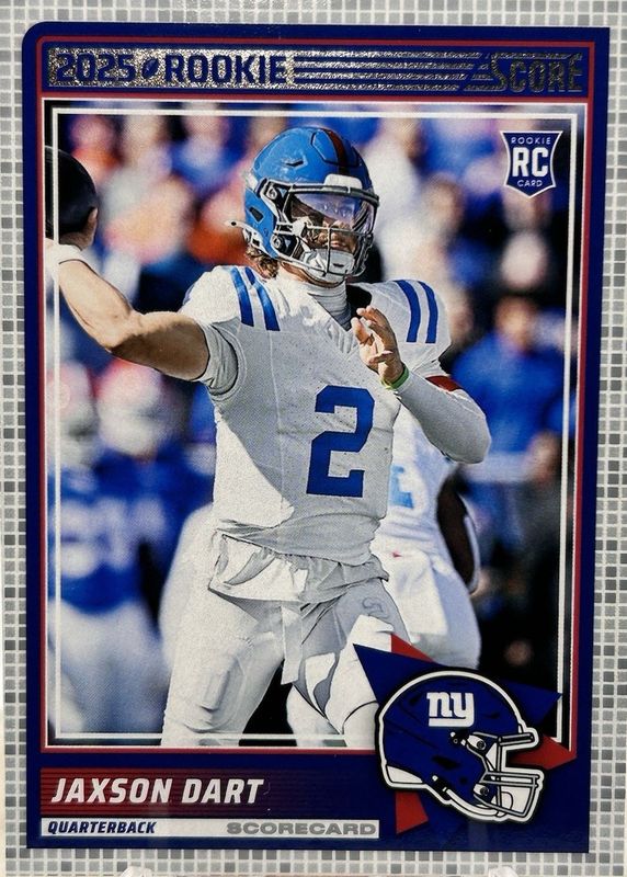 The Jaxson Dart 2025 Score #35 Scorecard Rookie card in Raw condition has moved up $0.01 (+0.5%) in the last 30 days and was last sold for $2.00 .