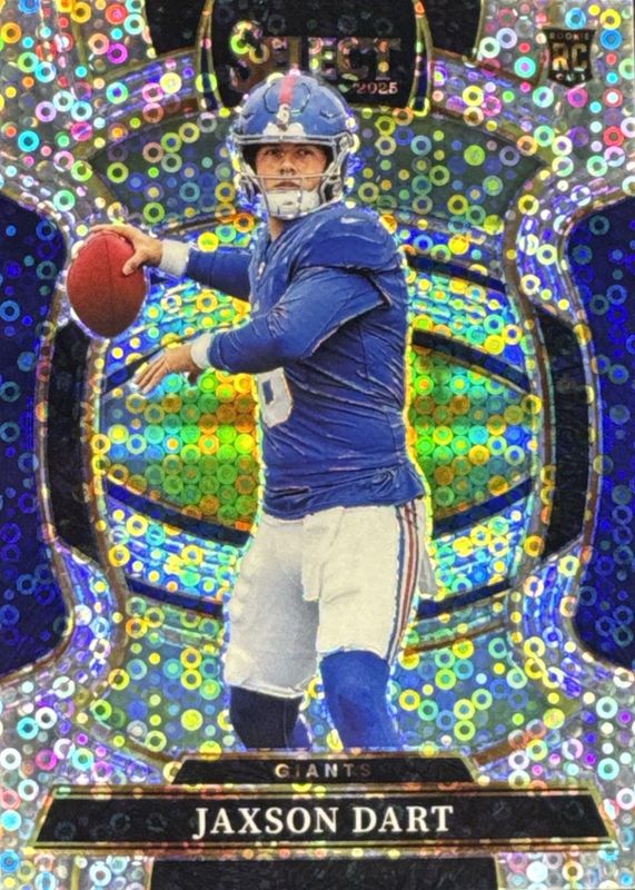 The Jaxson Dart 2025 Select #93 Concourse Disco Rookie card in Raw condition has moved down -$5.00 (-10.0%) in the last 30 days and was last sold for $45.00 .