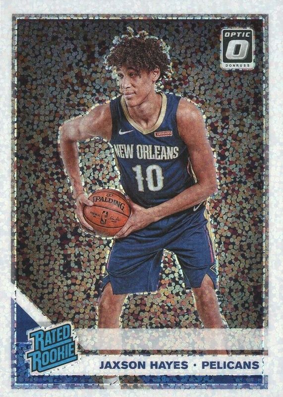 The Jaxson Hayes 2019 Optic #190 White Sparkle /(SSP) Rookie card in Raw condition has not changed in price in the last 30 days and was last sold for $9.49 .