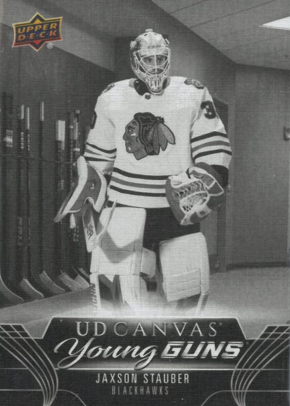 23/24 UPPER DECK CANVAS C115 JAXSON STAUBER YOUNG GUNS BLACK & WHITE BLACKHAWKS