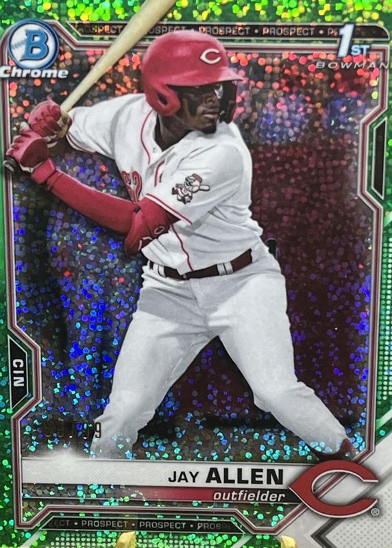JAY ALLEN 2021 Bowman Draft #BDC-11 Chrome Prospects (1st) GREEN SPARKLE /99