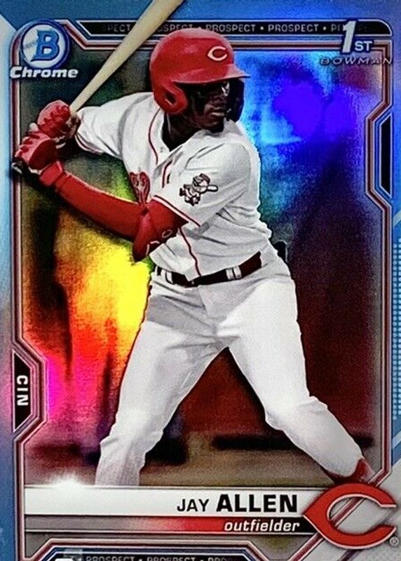2021 BOWMAN CHROME SKY BLUE REFRACTOR BDC11 JAY ALLEN 1ST BOWMAN CINCINNATI REDS