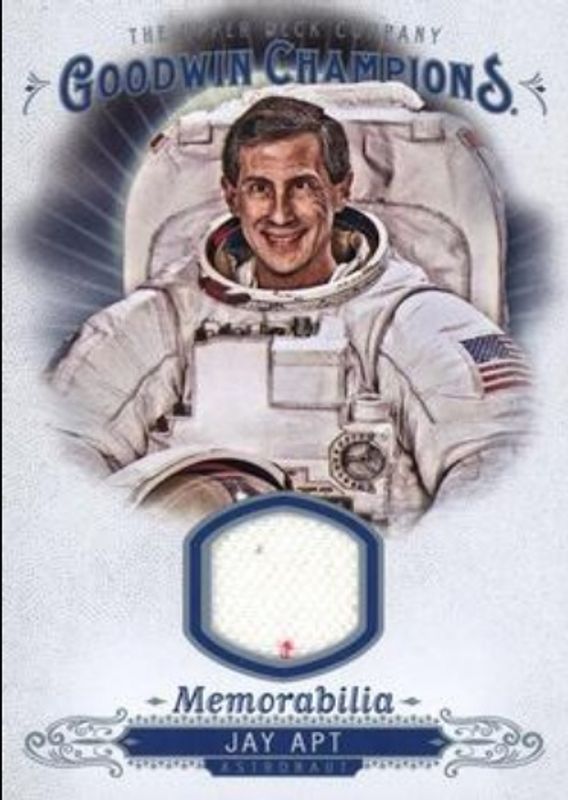 The Jay Apt 2018 Upper Deck Goodwin Champions #M-JA Memorabilia card is 1 of 47 Jay Apt's card variations in the 2018 Upper Deck Goodwin Champions set being tracked by Sports Card Investor, including #3 Base, #103 Base, #53 Base, Blank Back, and #53 Minis.