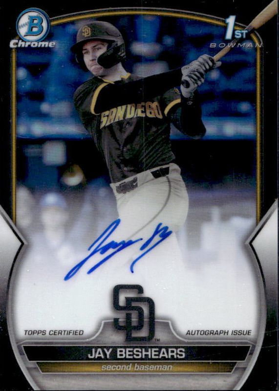 Jay Beshears 39/75 Chrome Prospect Auto 2023 Bowman Draft Black Padres #CDA-JBE