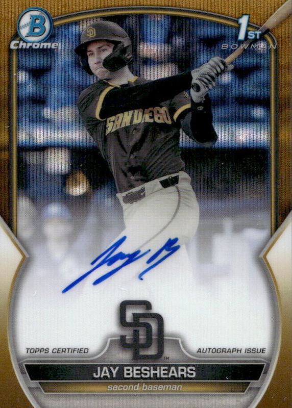 Jay Beshears 2023 Bowman Draft #CDA-JBE Chrome Prospect Auto - Gold Wave Refractor /50 (1st) RAW Price Guide