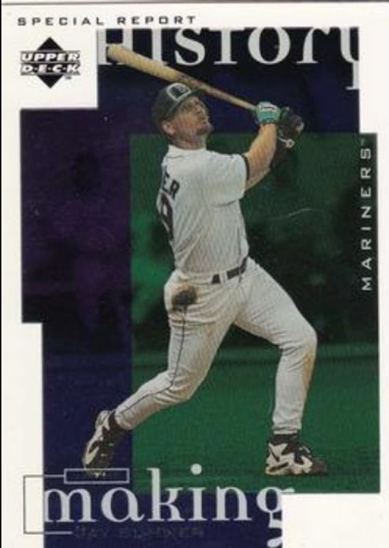 The Jay Buhner 1998 Upper Deck #3 Base card is 1 of 6 Jay Buhner's card variations in the 1998 Upper Deck set being tracked by Sports Card Investor, including Base, A Piece of the Action (Series One), A Piece of the Action (Series Two), Tape Measure Titans, and Tape Measure Titans Gold /2667.