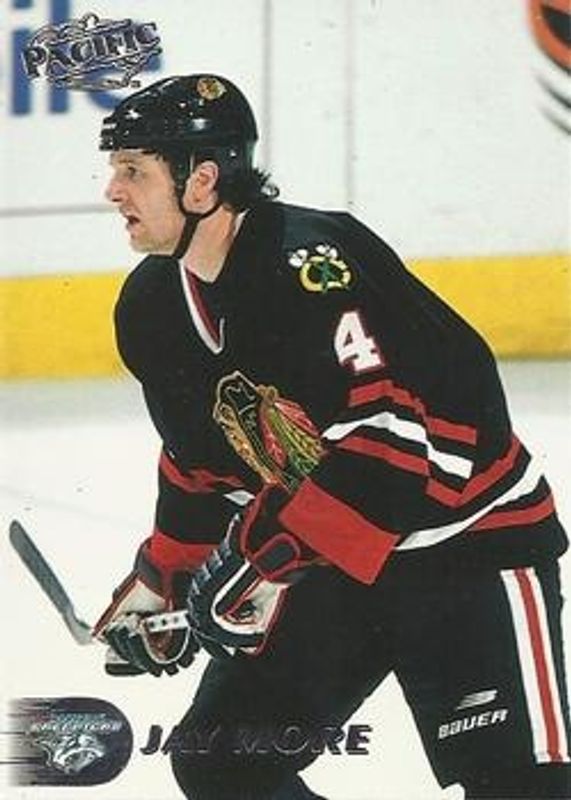 The Jay More 1998 Pacific #98 Base card is 1 of 3 Jay More's card variations in the 1998 Pacific set being tracked by Sports Card Investor, including Ice Blue, and Red.