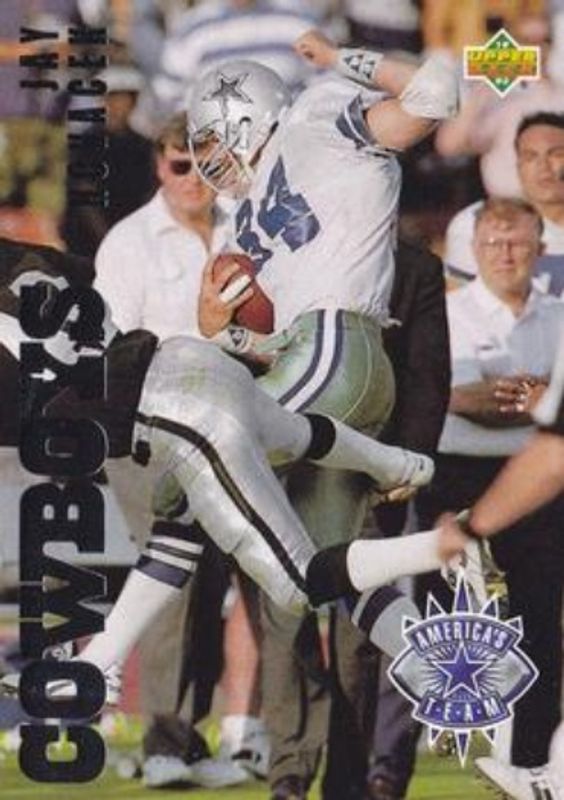 The Jay Novacek 1993 Upper Deck #AT12 America's Team card is 1 of 3 Jay Novacek's card variations in the 1993 Upper Deck set being tracked by Sports Card Investor, including Base, and America's Team Jumbo.