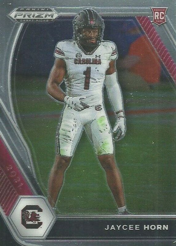 The Jaycee Horn 2021 Prizm Draft Picks #142 Base Rookie card in Raw condition has moved up $0.75 (+75.0%) in the last 30 days and was last sold for $1.75 .