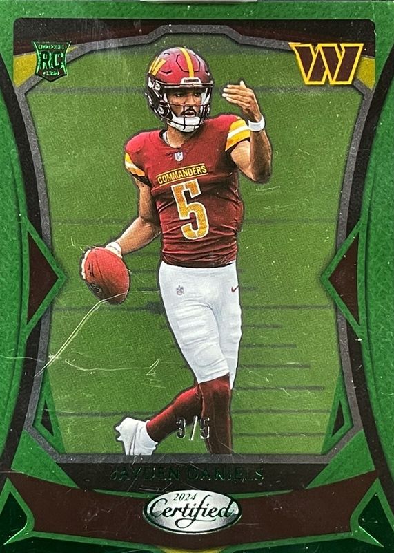 Jayden Daniels 2024 Certified #102 Mirror Green /5 Rookie RAW Price Guide
