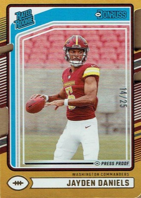 2024 PANINI DONRUSS JAYDEN DANIELS GOLD PRESS PROOF DIE-CUT RATED ROOKIE /25
