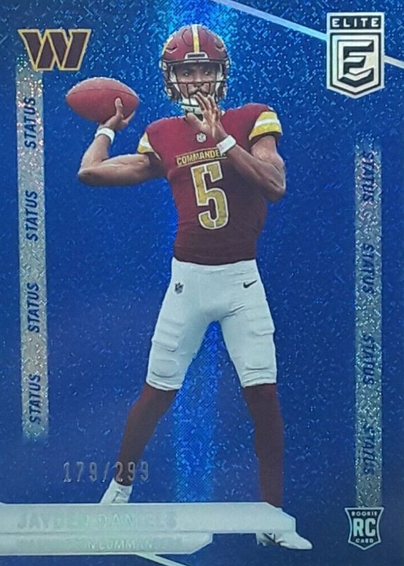 The Jayden Daniels 2024 Elite #165 Status Sparkle /299 Rookie card in Raw condition has not changed in price in the last 30 days and was last sold for $19.99 .
