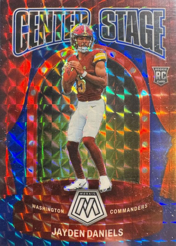 2024 🔥/99🔥PANINI MOSAIC JAYDEN DANIELS RC CENTER STAGE BLUE PRIZM