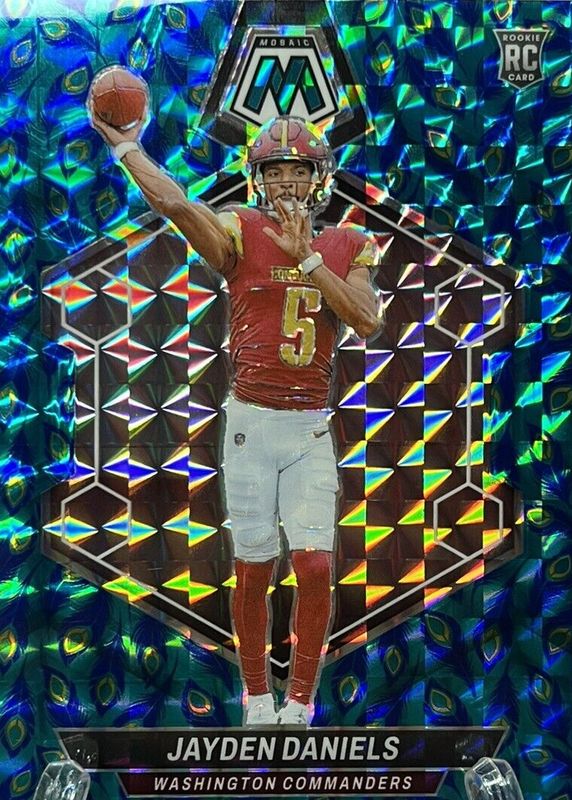 Auctions Ending Soon for Jayden Daniels 2024 Mosaic #302 Choice Peacock /(SSP) Rookie RAW