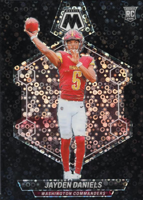 This card is 1 of 124 Jayden Daniels' card variations in the 2024 Mosaic set being tracked by Sports Card Investor, including Base, NFL Debut, Green, Mosaic, and NFL Debut - Green.
