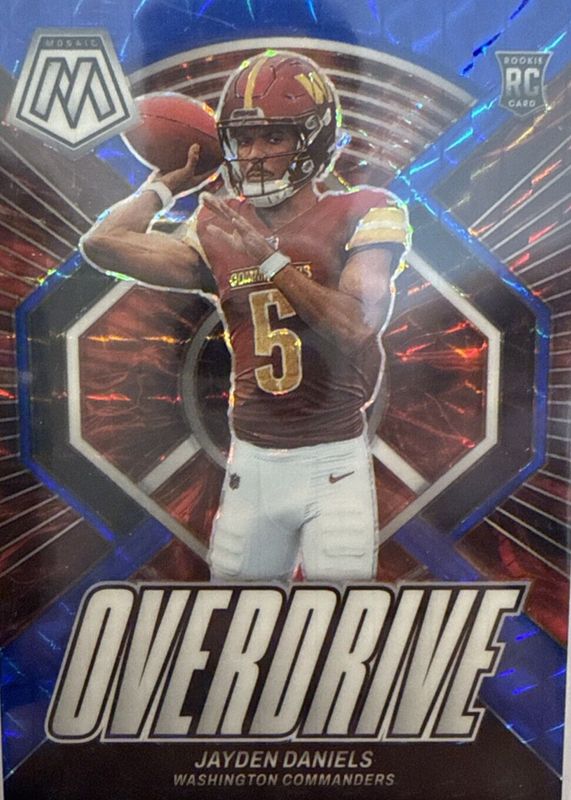 2024 Mosaic Jayden Daniels Overdrive RC Blue Rookie #58/99 Commanders