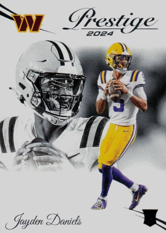 The Jayden Daniels 2024 Prestige #302 Base Rookie card in Raw condition has moved up $0.26 (+25.6%) in the last 30 days and was last sold for $1.25 .