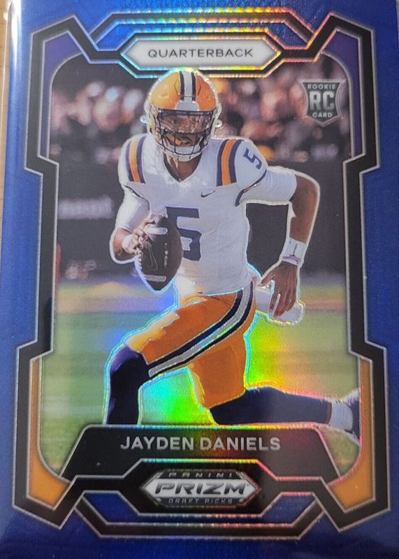 The Jayden Daniels 2024 Prizm Draft Picks #108 Blue /199 Rookie card in Raw condition has not changed in price in the last 30 days and was last sold for $56.00 .