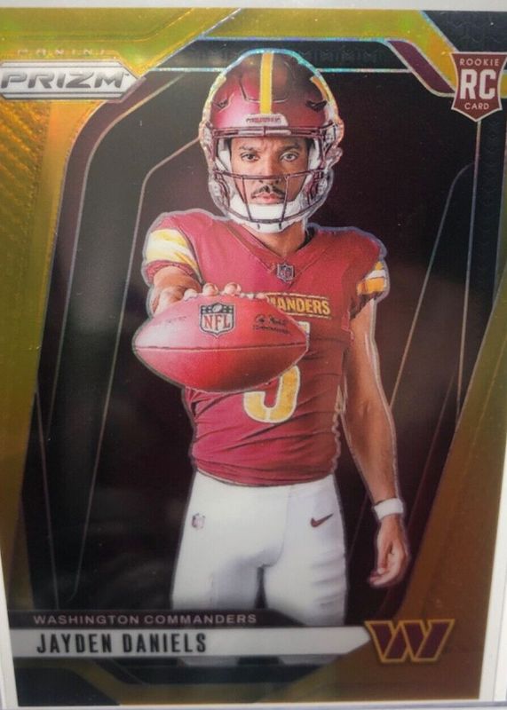The Jayden Daniels 2024 Prizm #17 Rookie Variation - Gold /10 card in Raw condition has not changed in price in the last 30 days and was last sold for $4,650.01 .