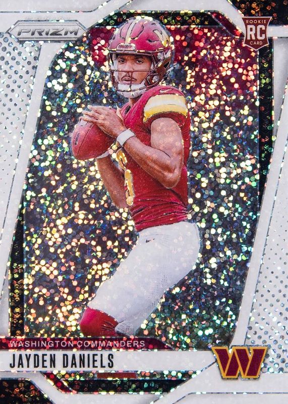 The Jayden Daniels 2024 Prizm #347 White Sparkle /(SSP) Rookie card in Raw condition has not changed in price in the last 30 days and was last sold for $6,988.00 .