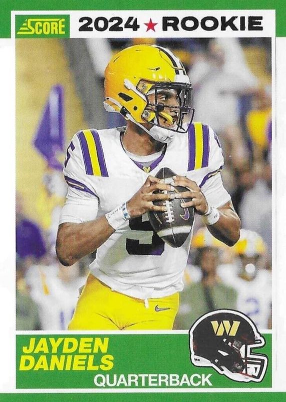 The Jayden Daniels 2024 Score #2 35th Anniversary Rookie card in Raw condition has moved up $0.50 (+50.0%) in the last 30 days and was last sold for $1.50 .