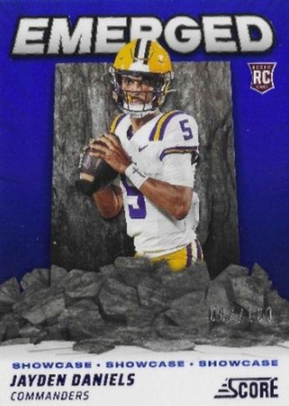 2024 Panini Score Emerged Jayden Daniels RC Blue Showcase 031/100 Commanders